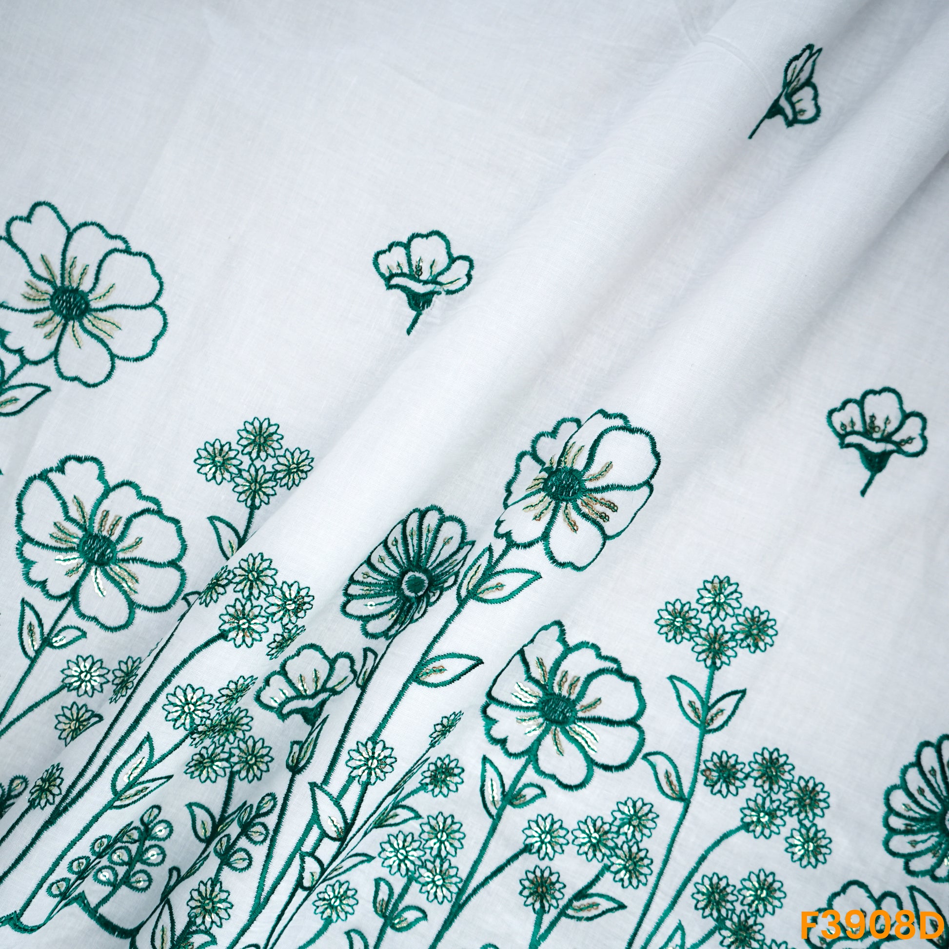 Thread Sequin Embroidered Kora Cotton Fabric- F3908