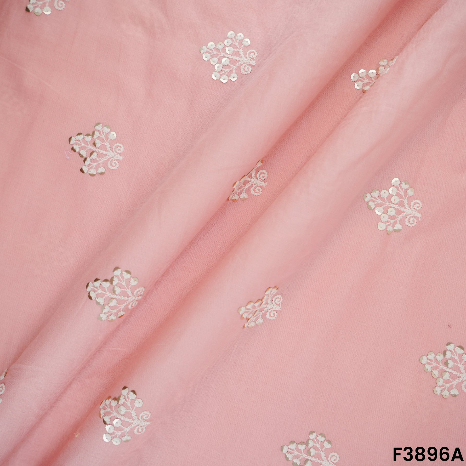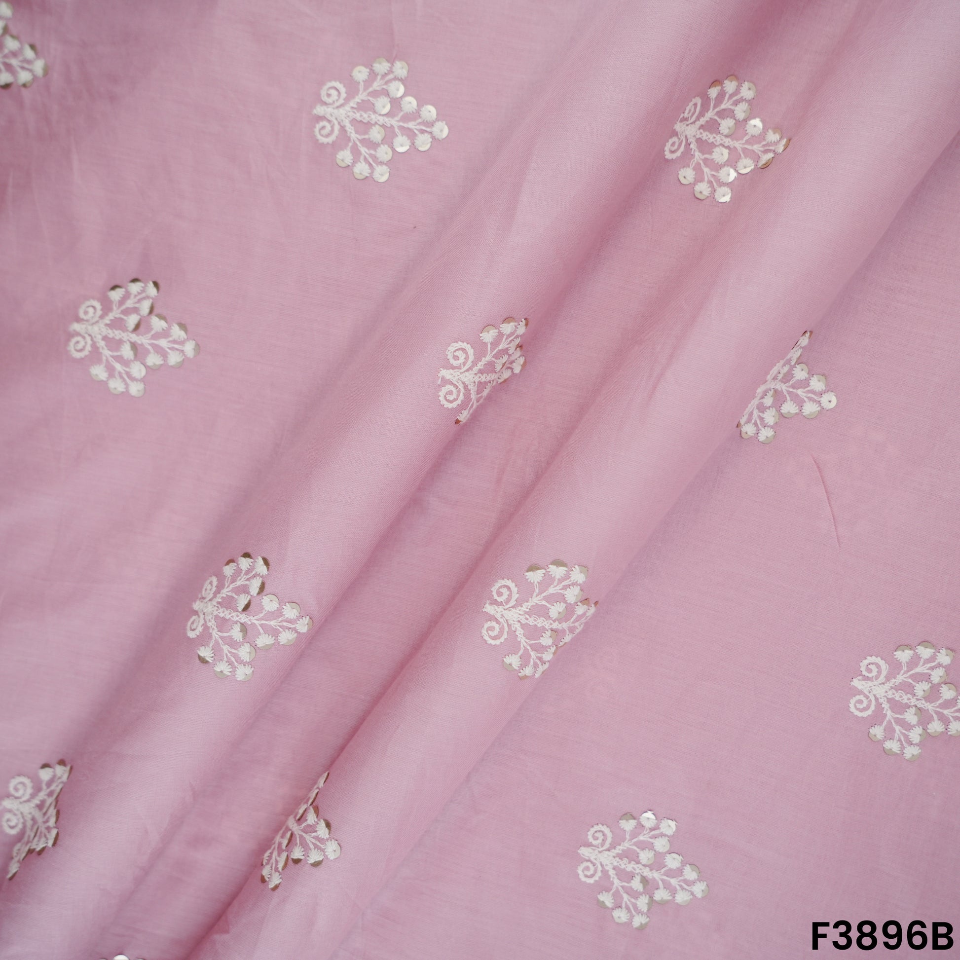 Thread Sequins Embroidered Cambric Cotton Fabric- F3896