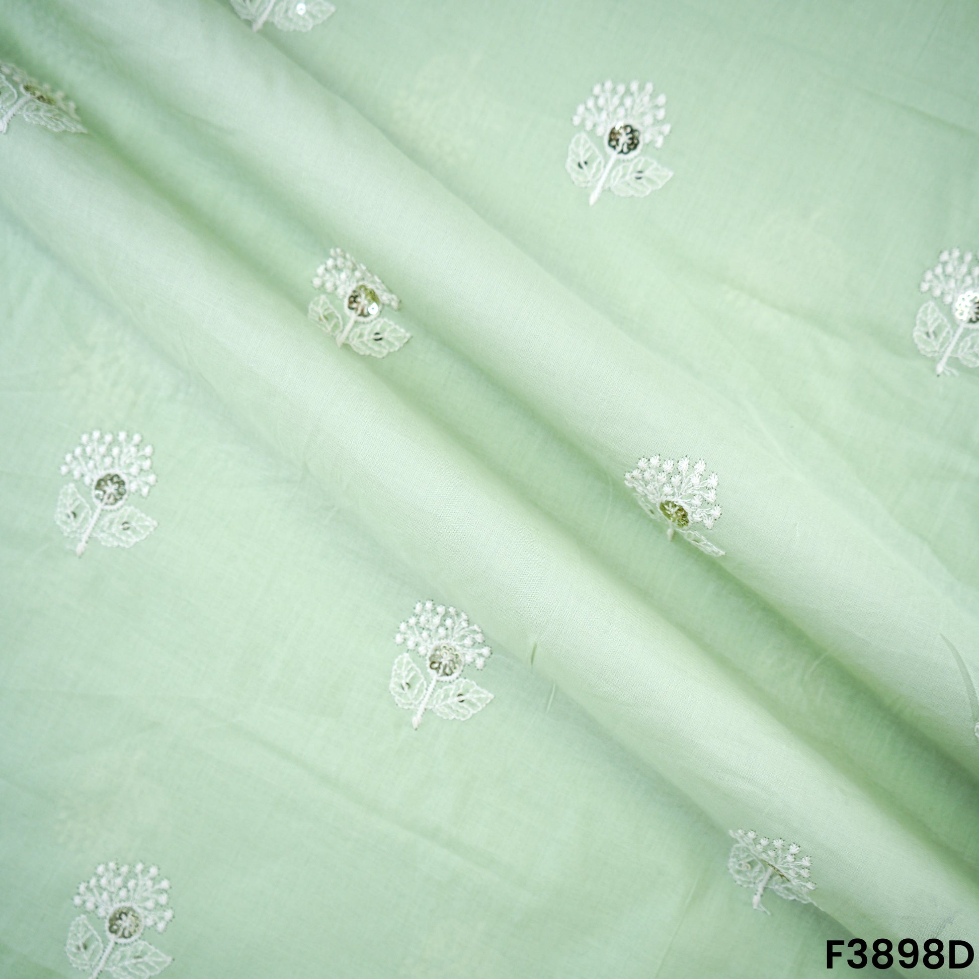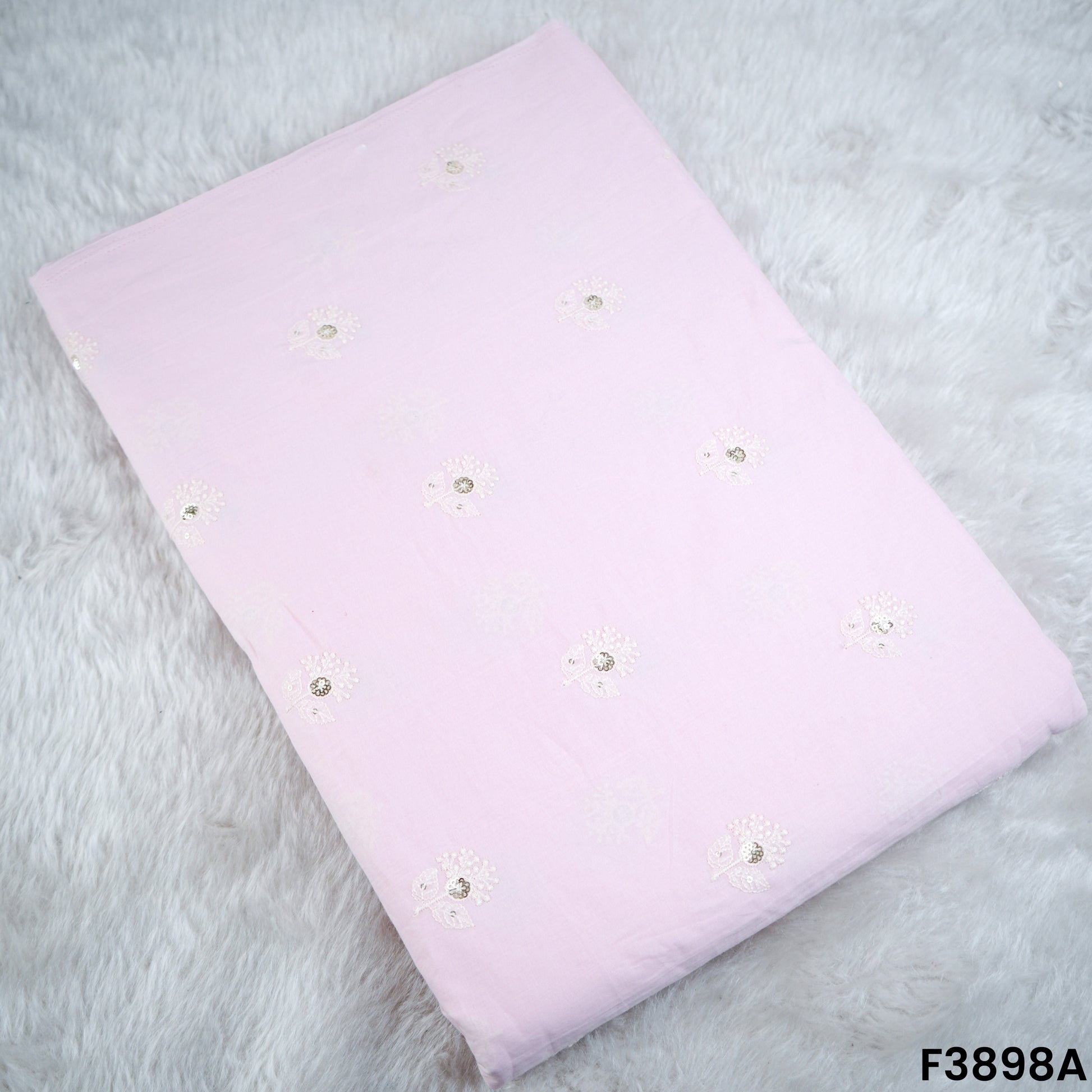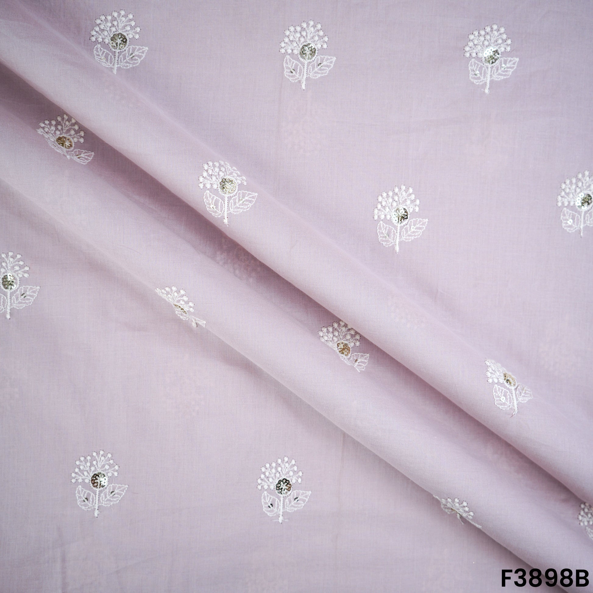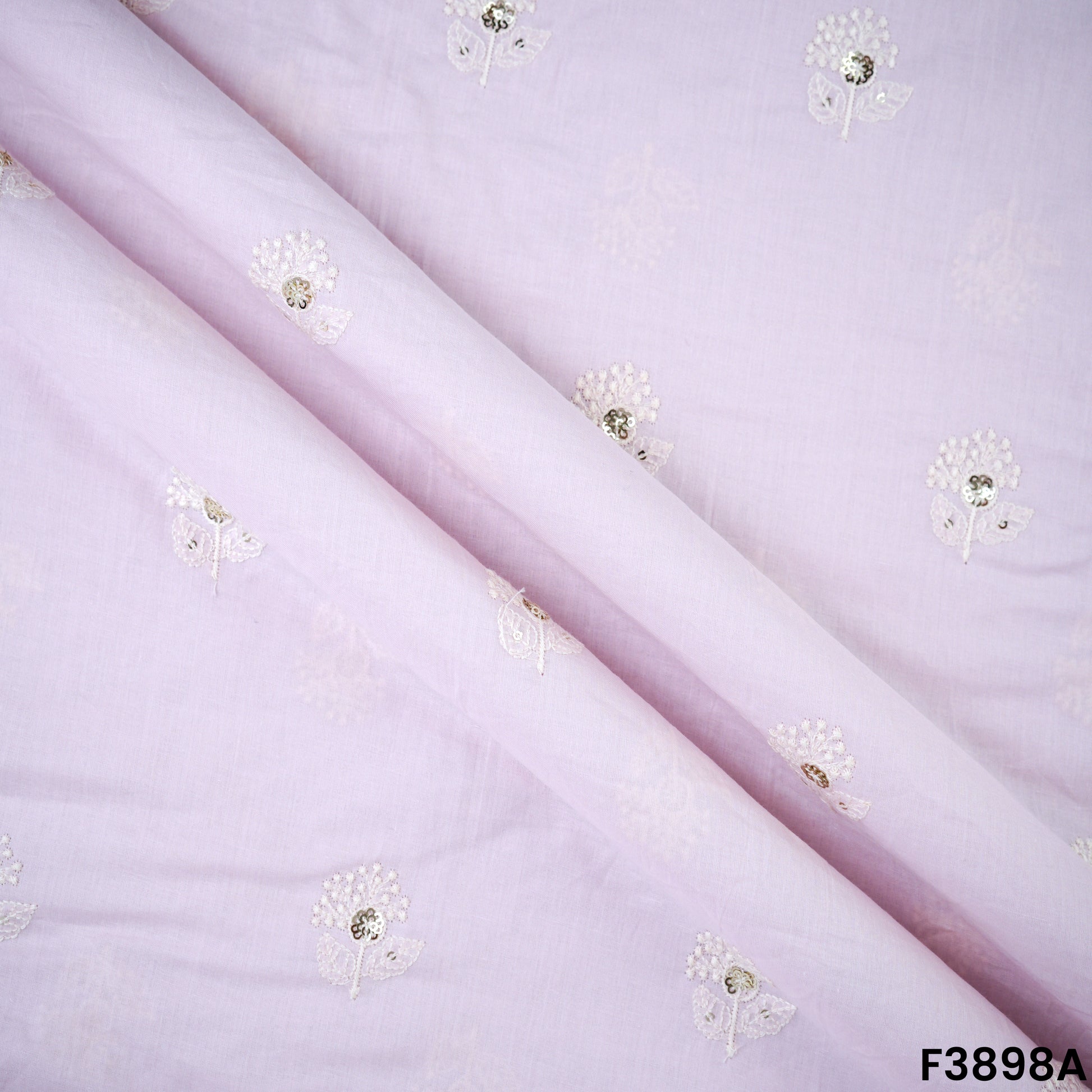 Thread Sequins Embroidered Cambric Cotton Fabric- F3898