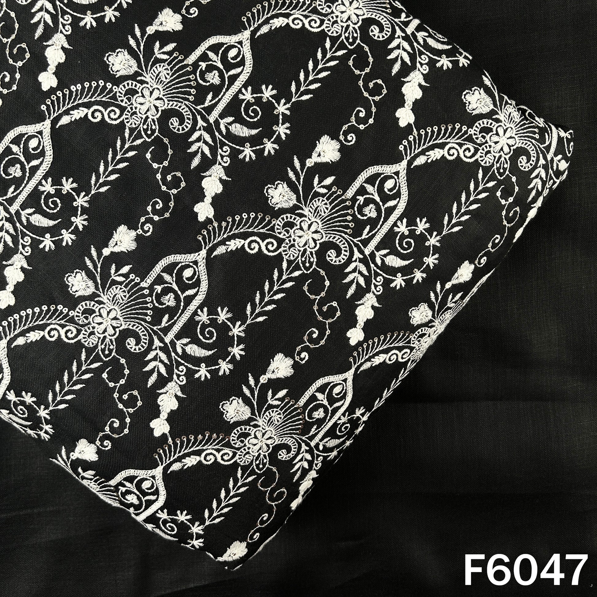Thread Sequins Embroidered Linen Cotton Fabric - F6047
