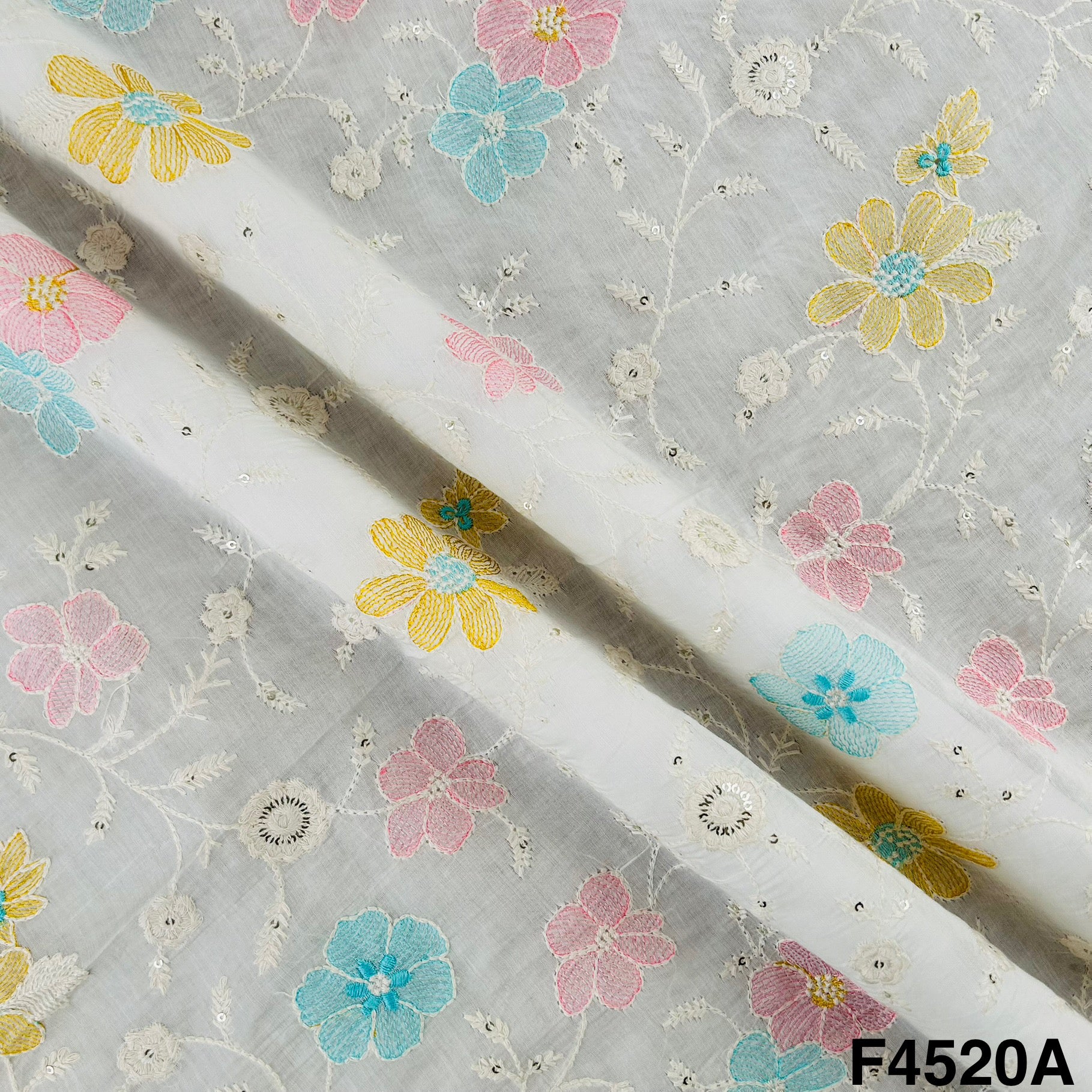 Thread Sequins Embroidered Mul Chanderi Fabric- F4520