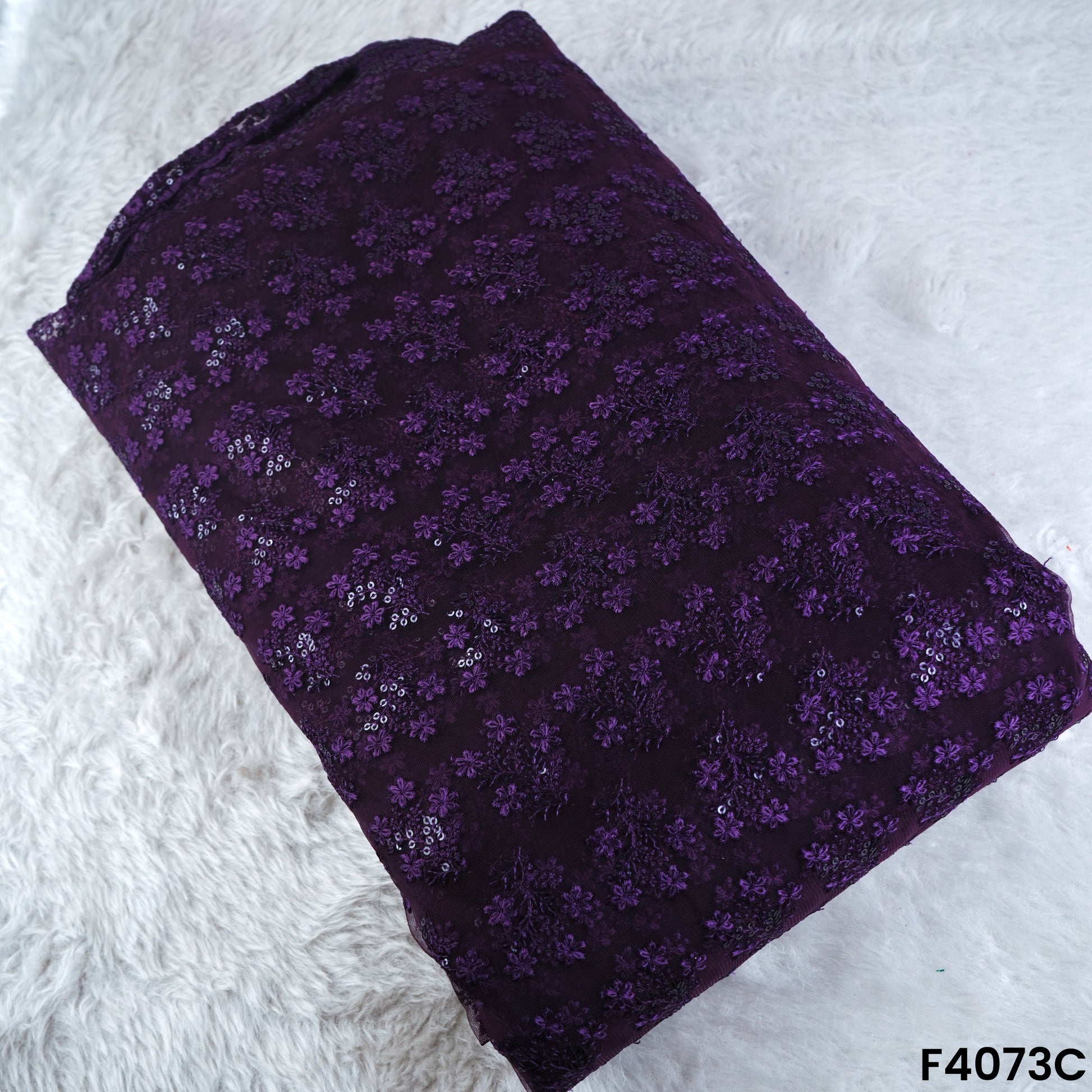 Thread Sequins Embroidered Net Fabric- F4073