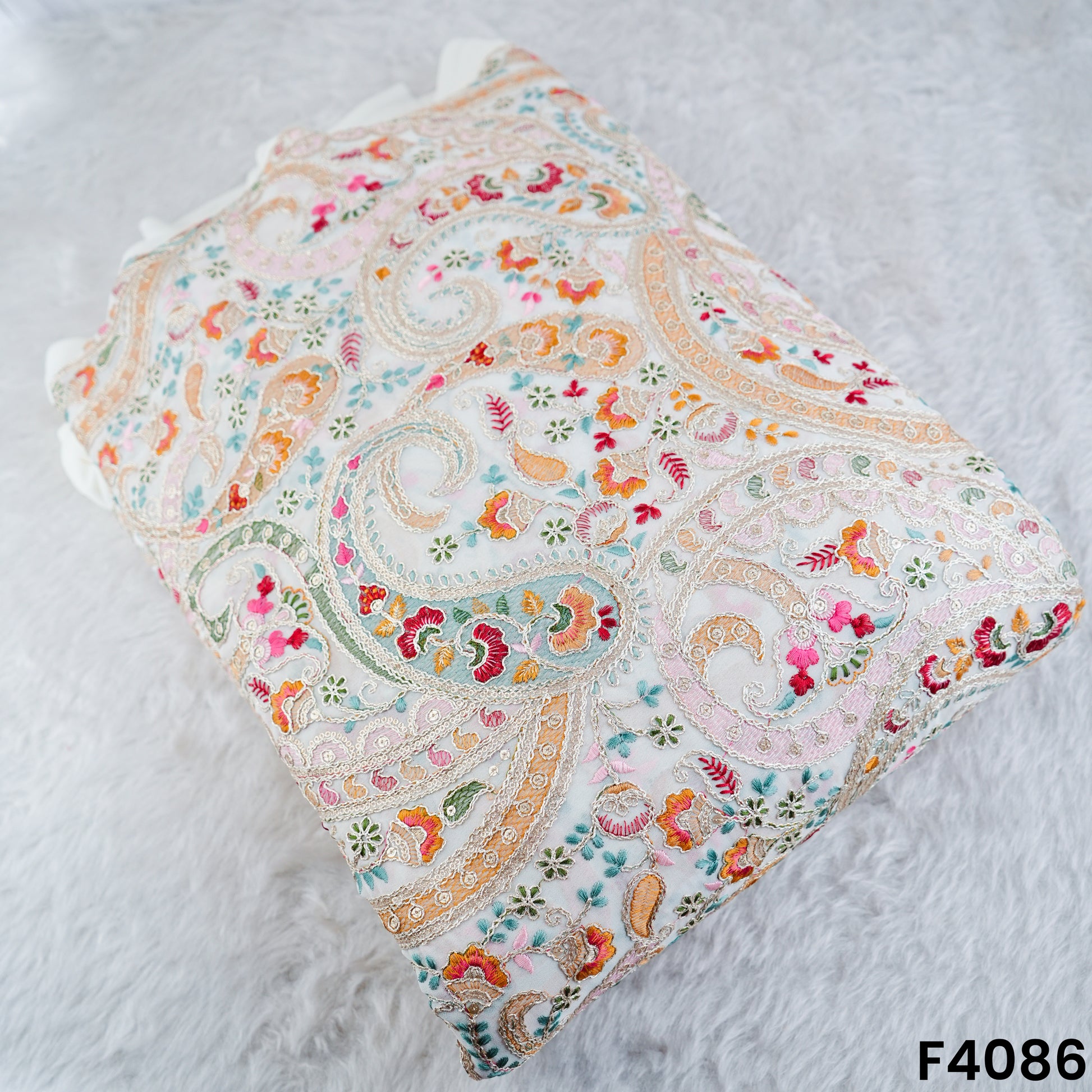 Thread Work zari Sequins Embroridered Georgette Fabric-F4086