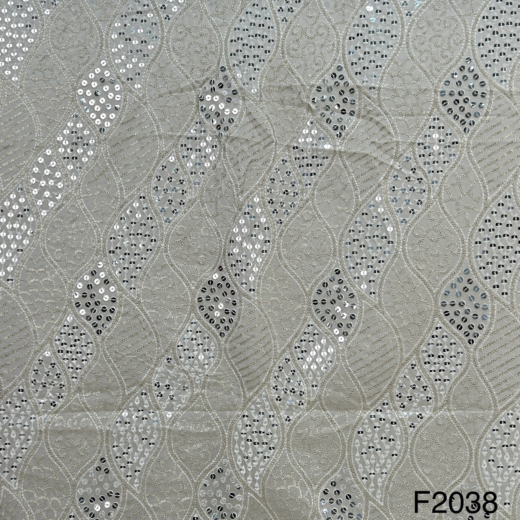 Dyeable Thread Sequins Mirror Embroidered Georgette Fabric - f2038
