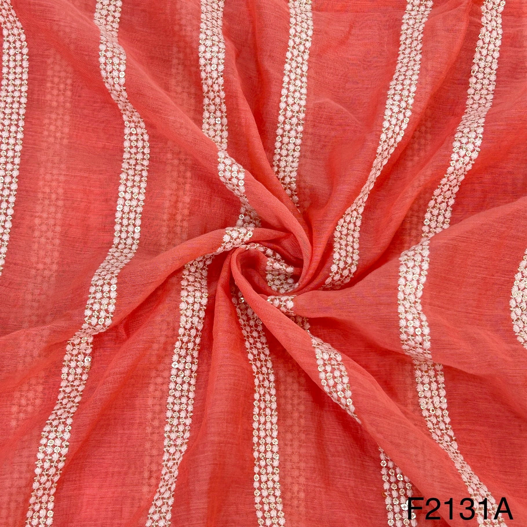 Thread Sequins Embroidered Chanderi Fabric-F2131