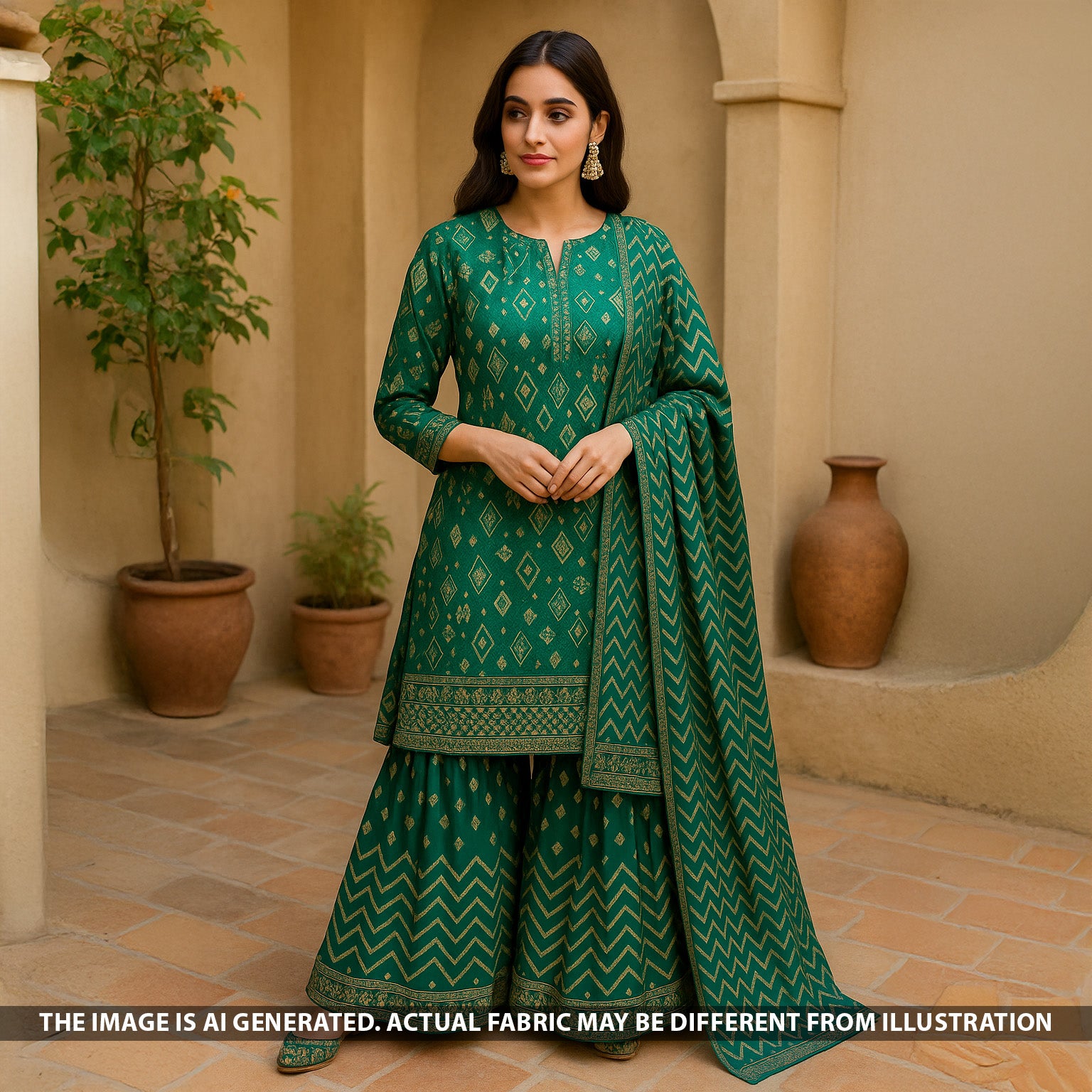 • Luxurious tissue silk fabric featuring intricate zari detailing and faux mirror work, designed for both top and bottom wear. The fabric offers a rich festive appeal with its elegant patterning, making it perfect for ethnic outfits, contemporary silhouettes, and premium occasionwear. Soft, lightweight, and gracefully textured for a refined finish.