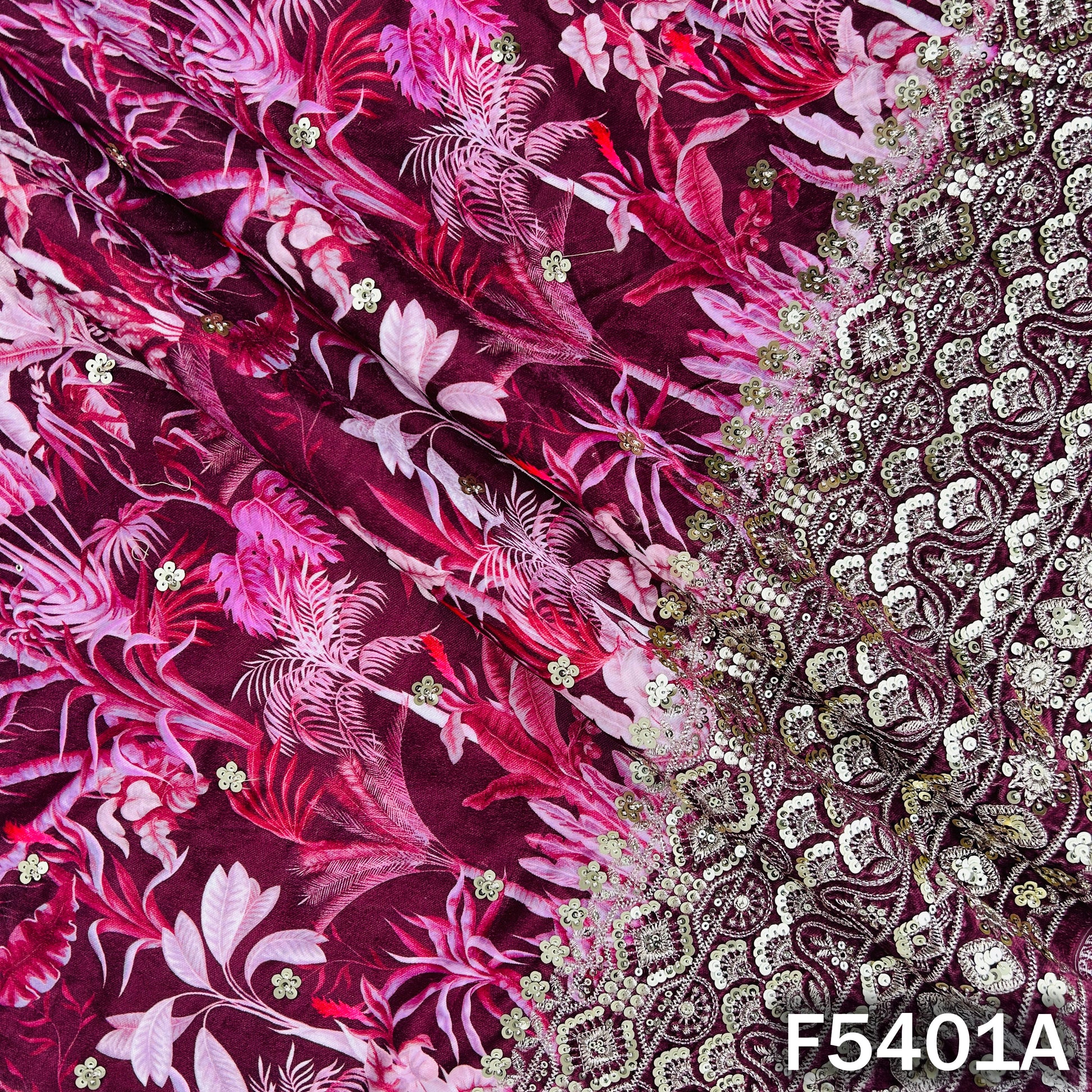 Zari Sequins Embroidered Velvet Fabric - F5401