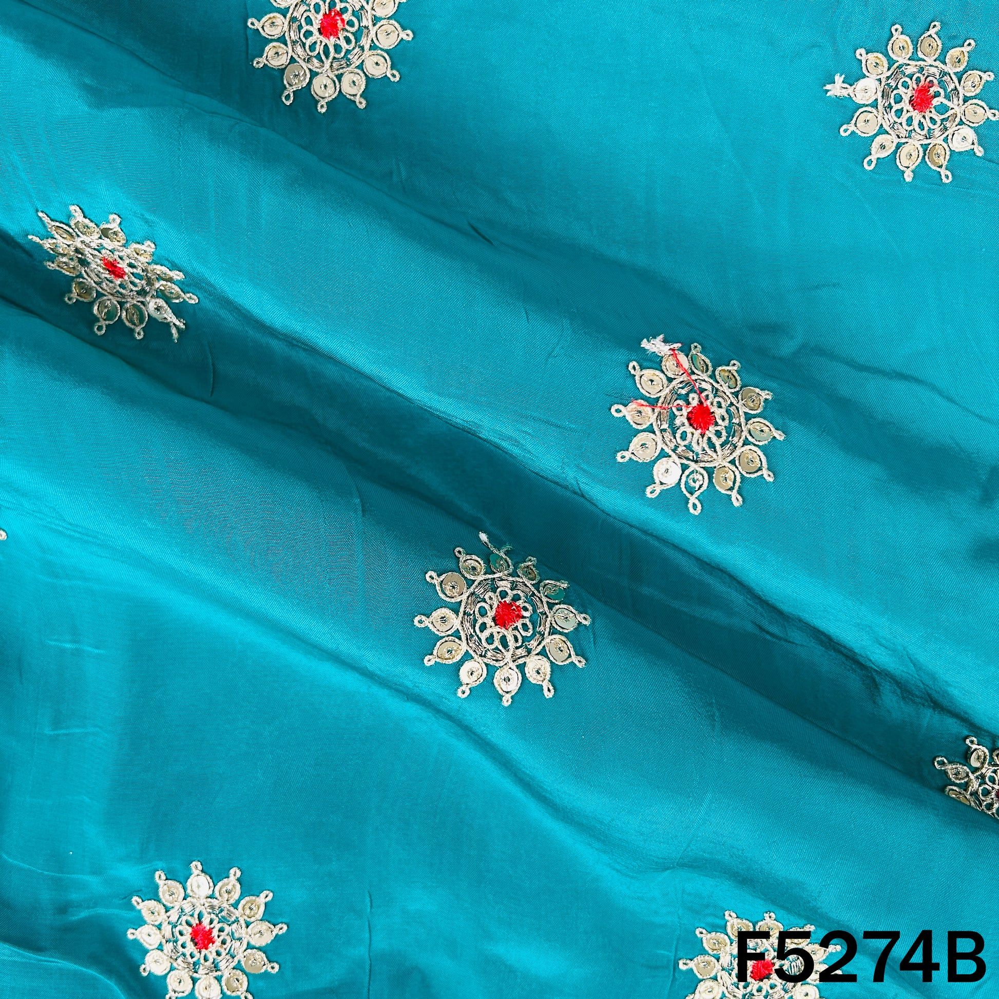 Zari Sequins Thread Work Viscose Crepe Fabric - F5274