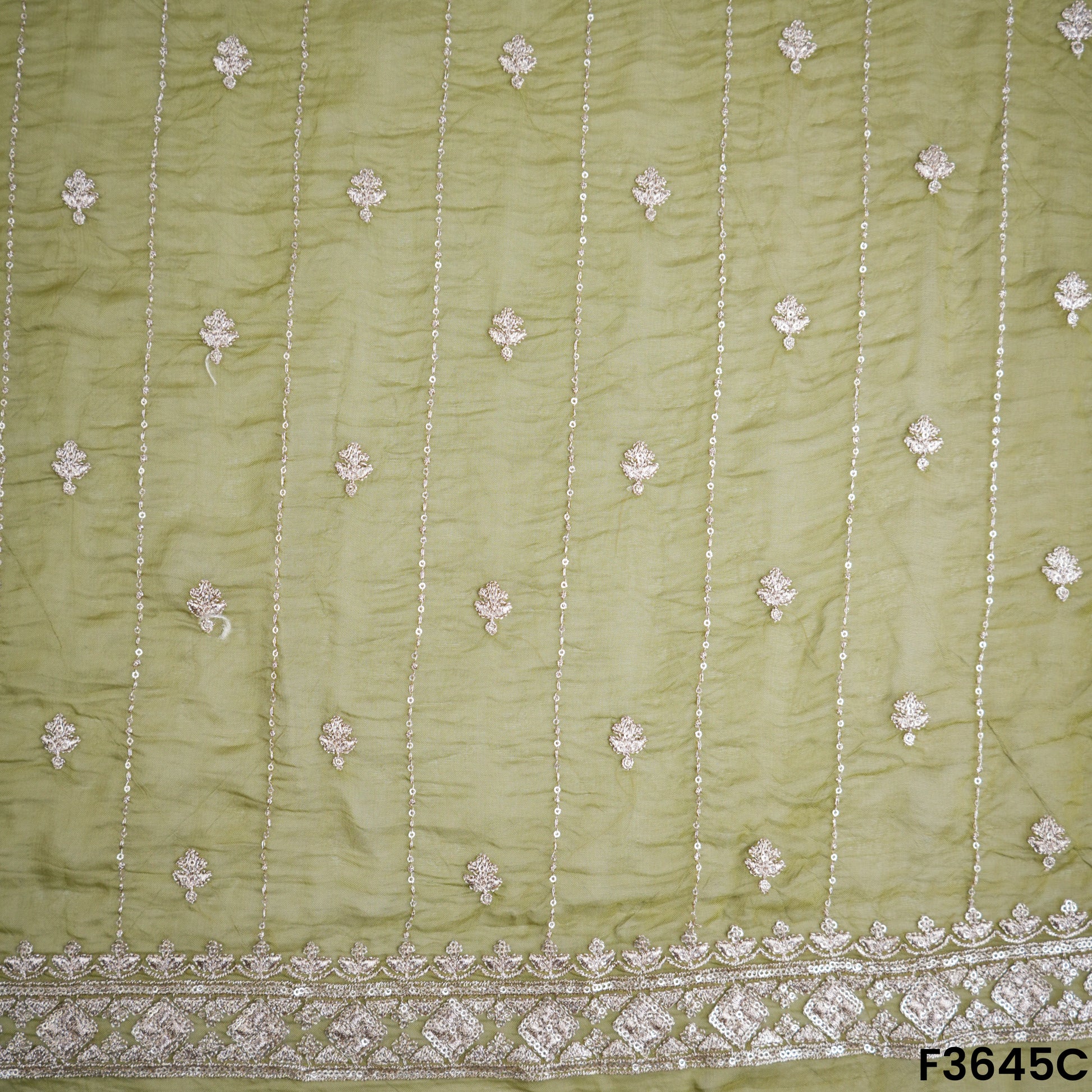 Zari Sequins Work Viscose Organza Fabric-F3645