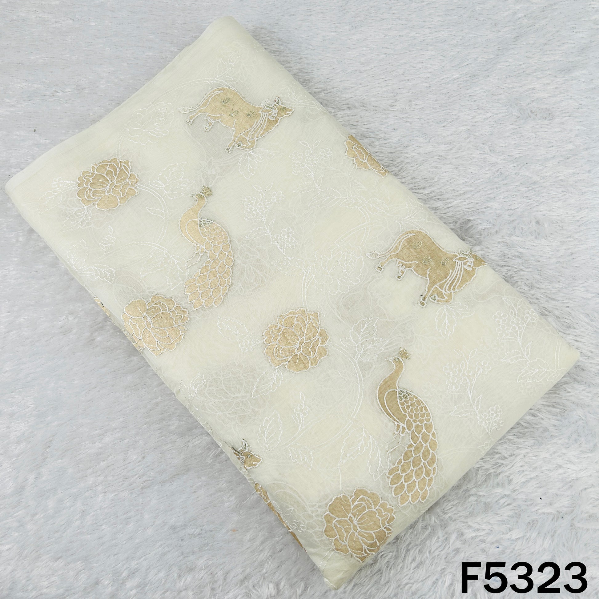 Zari Thread Embroidered Pure Chanderi Silk Fabric - F5323