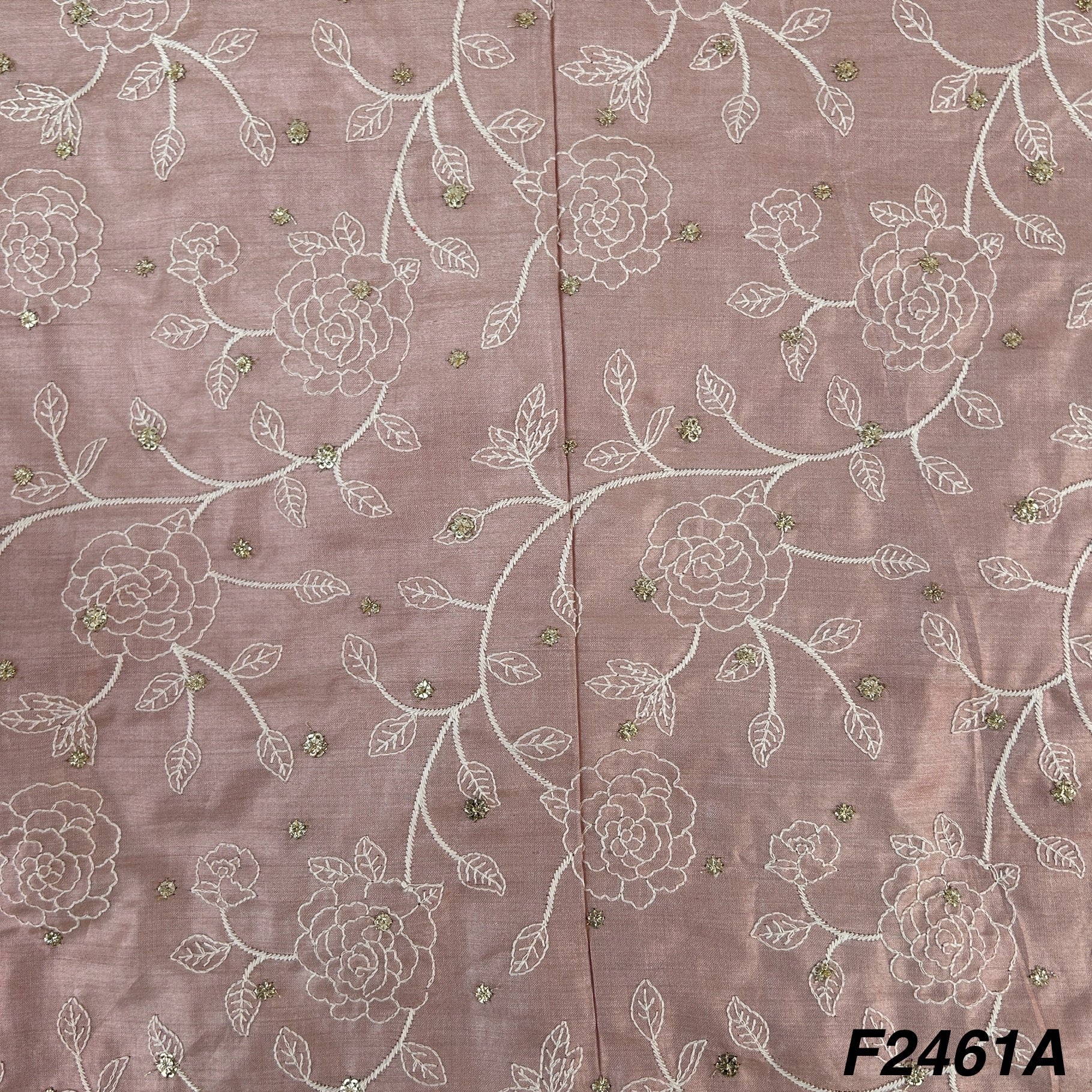 Zari Thread Embroidered Tusser Silk Fabric-2461