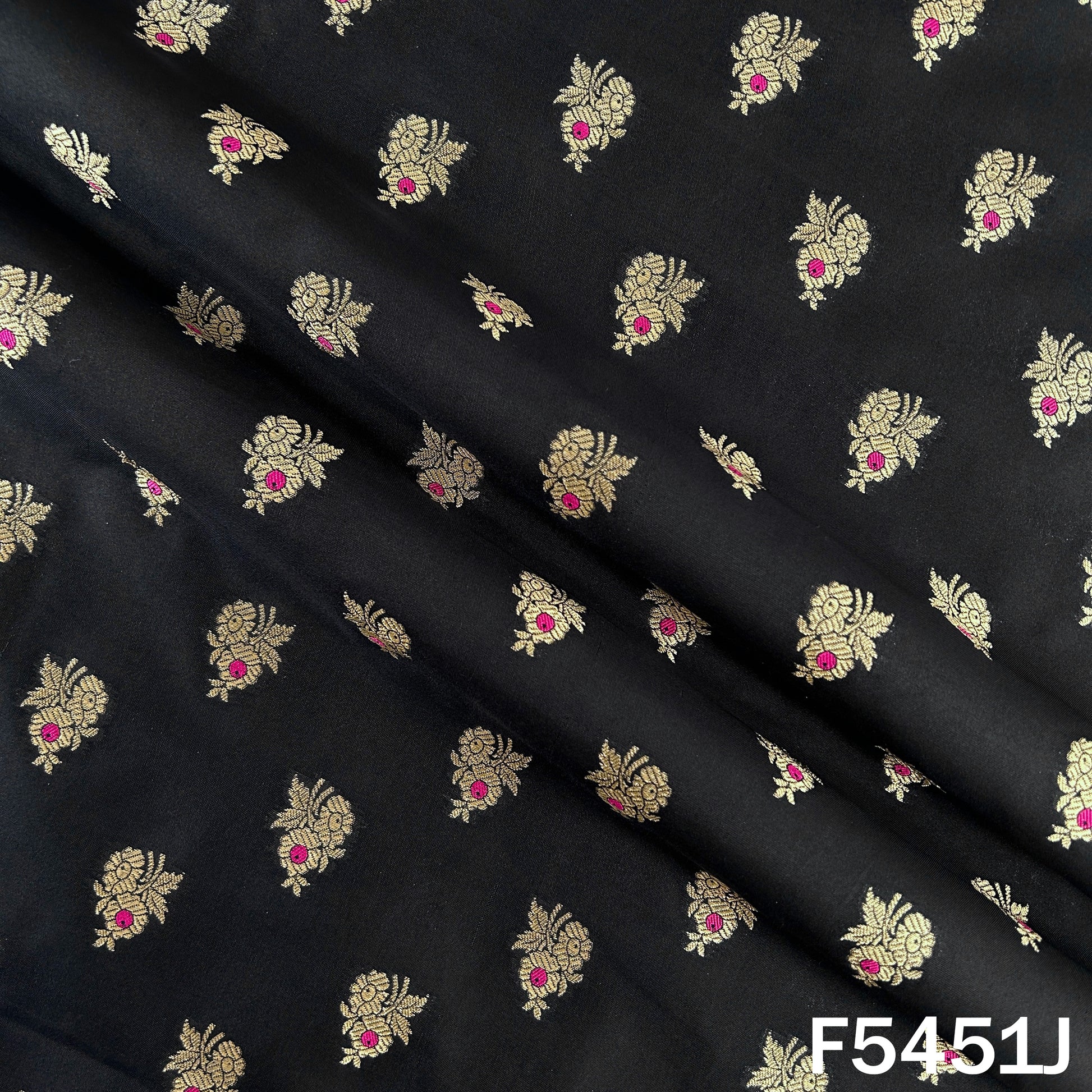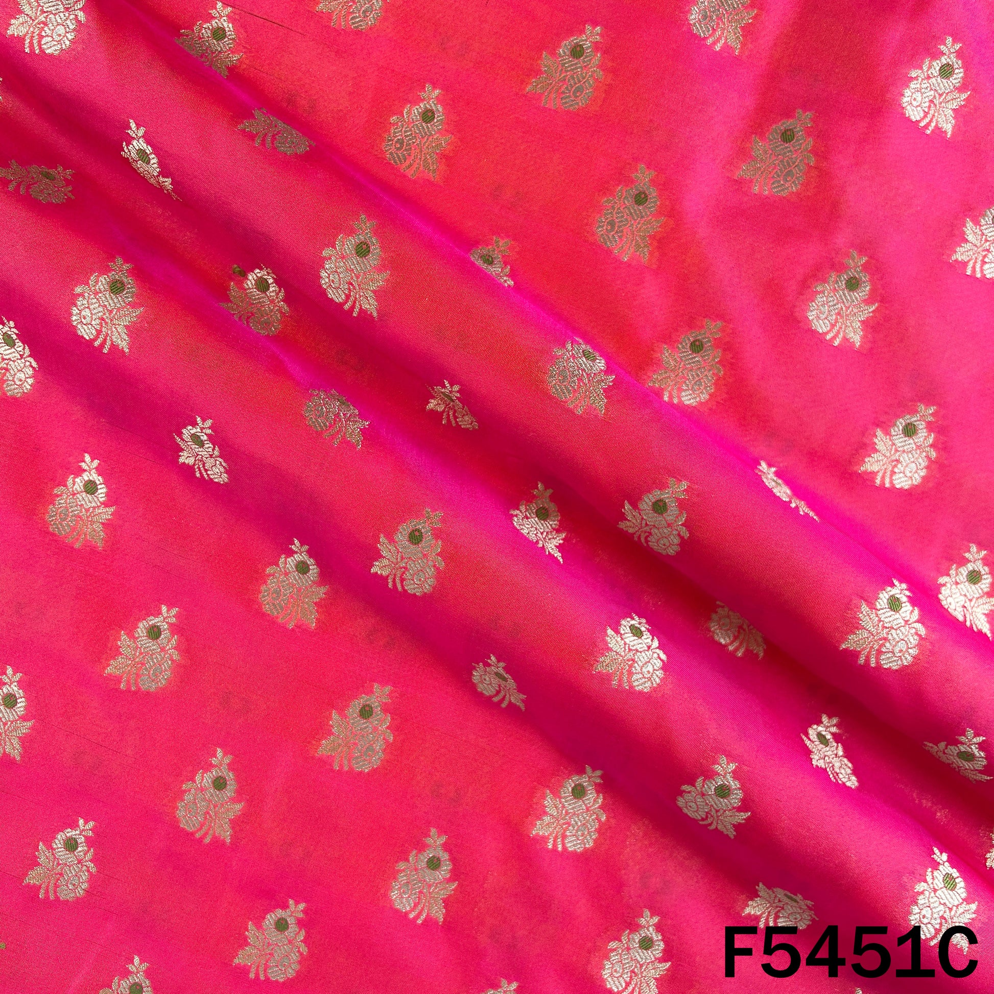 • Rich Banarasi brocade silk adorned with elegant zari motifs, offering a luxurious sheen and timeless appeal—perfect for festive wear, bridal outfits, and statement ethnic creations.