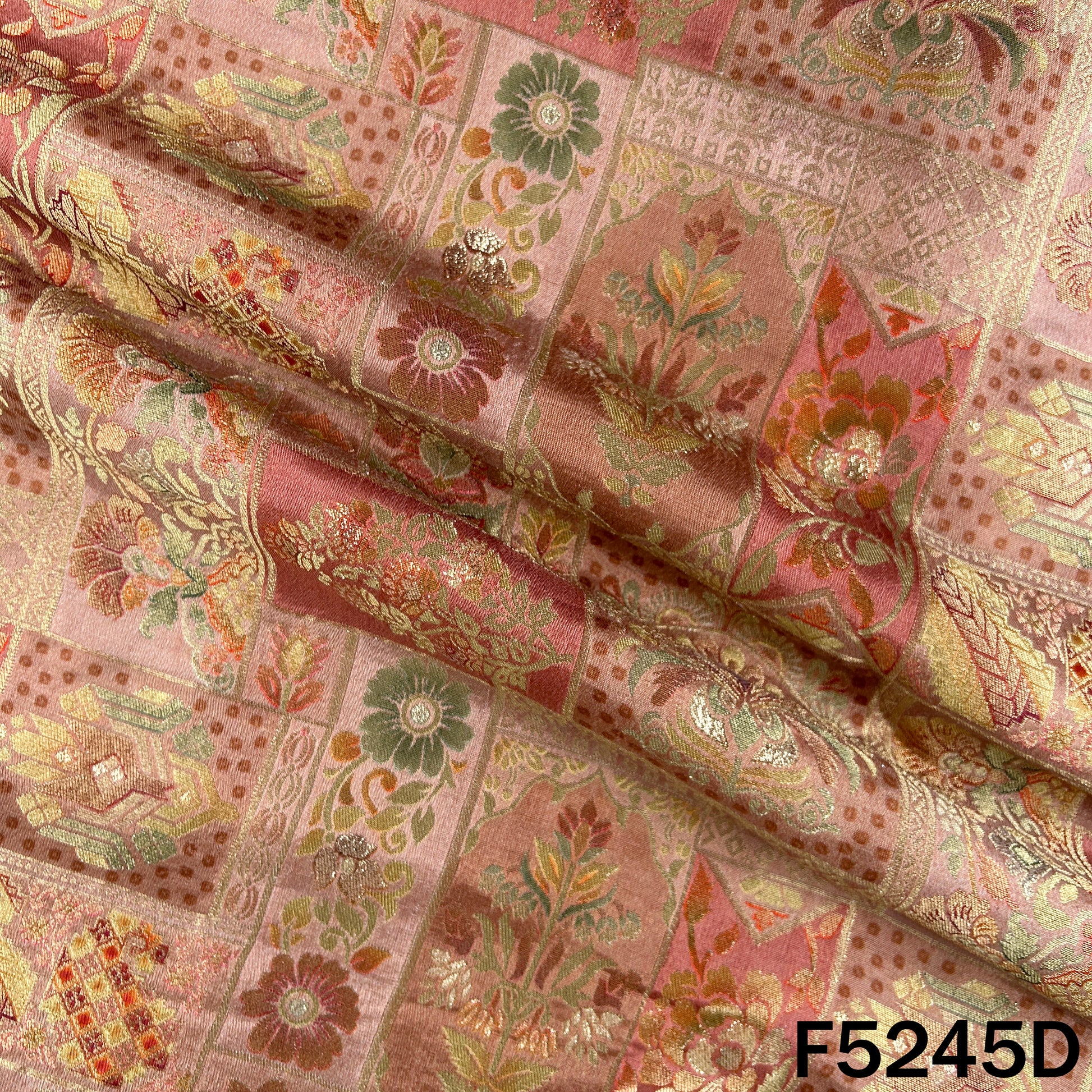 Zari Work Positional Print Jacqard Dola Silk Fabric - F5245