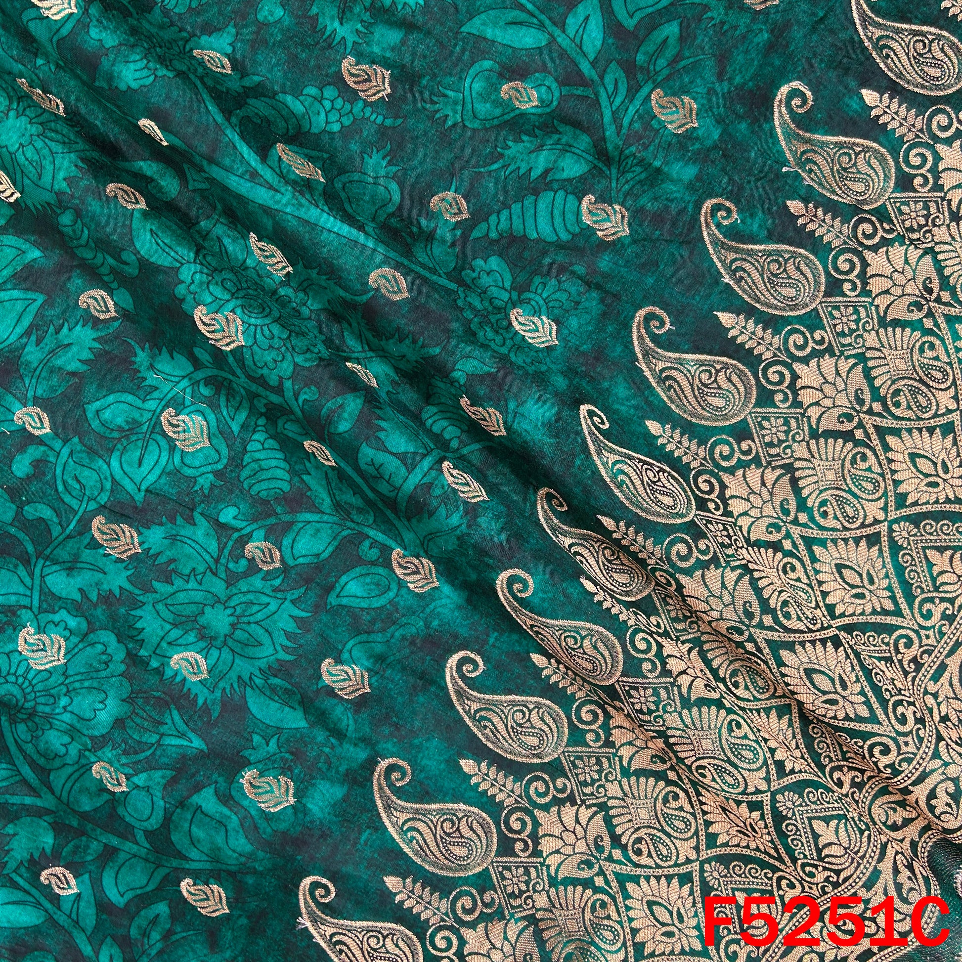 Zari Work Positional Print Jacquard Dola Silk Fabric - F5251